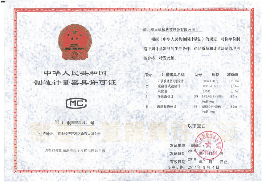 2005年 ●創(chuàng)立:湖北華興鍋爐儀表制造有限公司