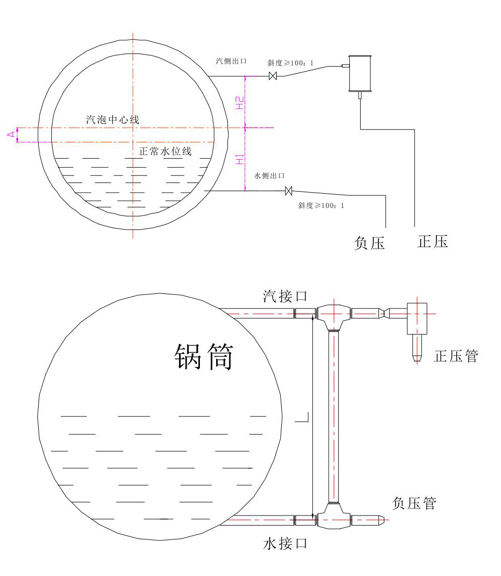 A pipe is led from the sampling hole on the steam side of the drum to the balance container. The saturated steam entering the balance container continuously condenses into water. The excess water flows back to the drum from the sampling pipe due to the overflow principle, keeping the water level in the balance container constant. Therefore, the positive pressure head of the differential pressure transmitter remains unchanged due to the constant water column in the balance container, while the negative pressure head changes with the change of the drum water level.