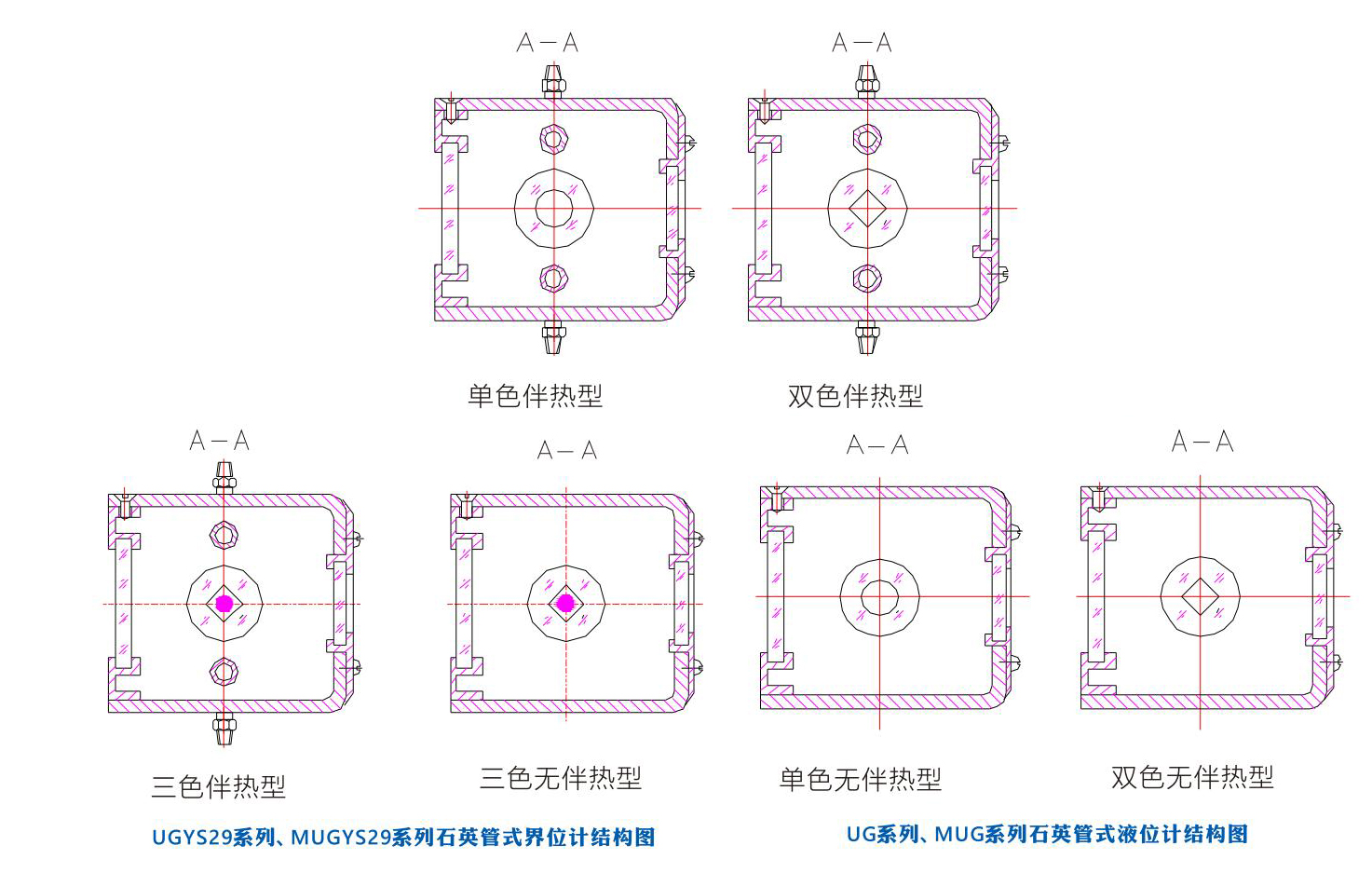 該系列產(chǎn)品根據(jù)使用環(huán)境溫度不同,分為基本型和伴熱型,伴熱型解決了因環(huán)境溫度過低介質(zhì)凝固而造成虛假液位的難題。